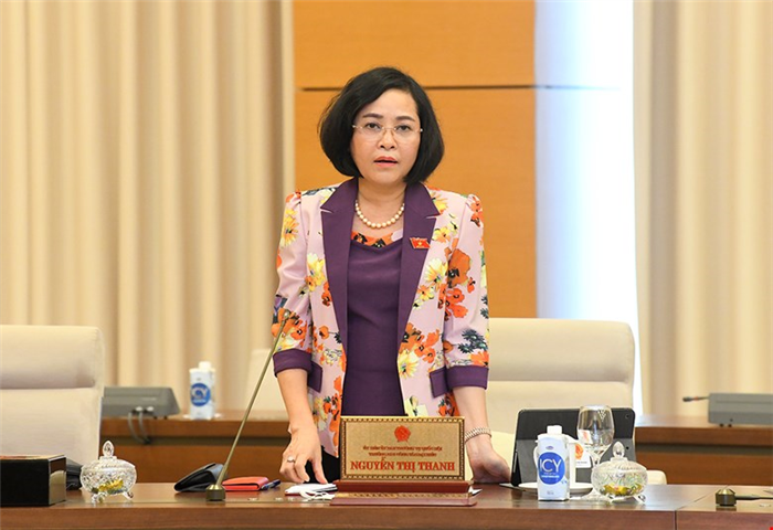 Trưởng Ban Công tác đại biểu Nguyễn Thị Thanh thảo luận tại phiên họp.