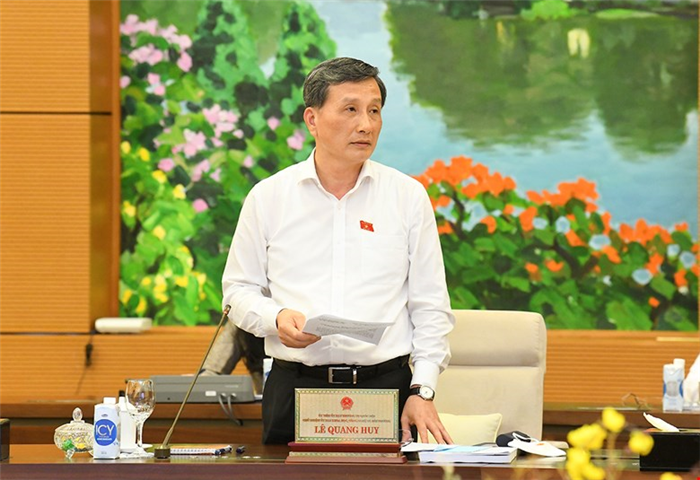 Chủ nhiệm Ủy ban KH,CN&MT Lê Quang Huy trình bày báo cáo thẩm tra.