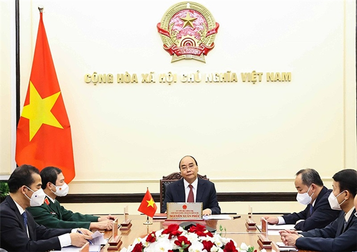 Chủ tịch nước Nguyễn Xuân Phúc tại cuộc điện đàm. |