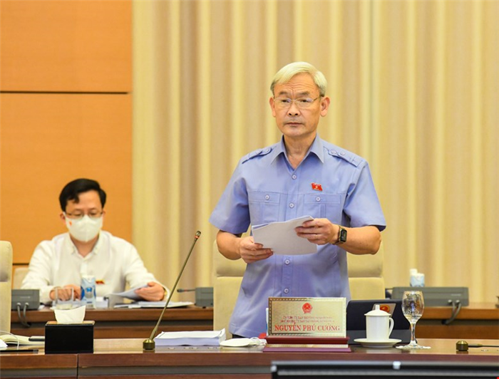 Chủ nhiệm Ủy ban Tài chính - Ngân sách Nguyễn Phú Cường trình bày báo cáo.
