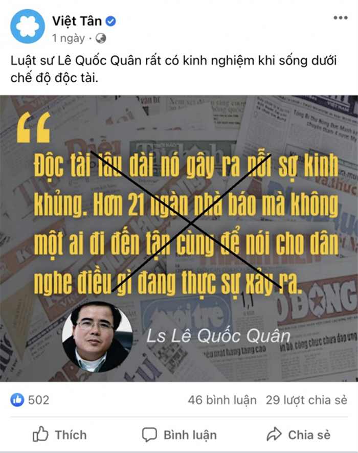 Trong một thời gian ngắn, trang “Dân quyền” đã phát tán hơn 1.000 bài viết, trong đó có nhiều bài chống phá Đại hội XIII của Đảng, kêu gọi “Đảng Cộng sản Việt Nam chia sẻ quyền lực” với các “tổ chức xã hội dân sự” để thực thi “dân chủ hóa”, “chuyển đổi thể chế chính trị từ toàn trị sang dân chủ một cách ôn hòa”, công kích, hạ uy tín các đồng chí lãnh đạo Đảng.