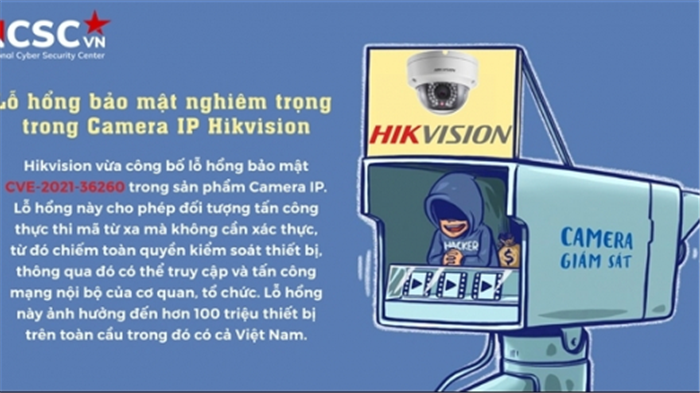Ngày 23/9, Cục An toàn thông tin, Bộ Thông tin và Truyền thông (TT&TT) đã có cảnh báo gửi đơn vị chuyên trách công nghệ thông tin (CNTT) cơ quan ngang Bộ và Chính phủ về lỗ hổng nghiêm trọng trong sản phẩm camera IP của Hikvision. Lỗ hổng này được nhận định ảnh hưởng đến hơn 100 triệu thiết bị trên toàn cầu, trong đó có Việt Nam.