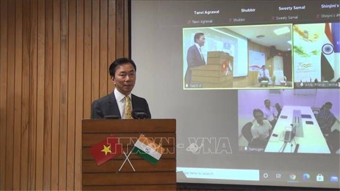 Đại sứ Việt Nam tại Ấn Độ Phạm Sanh Châu phát biểu tại buổi lễ. Ảnh: TTXVN |