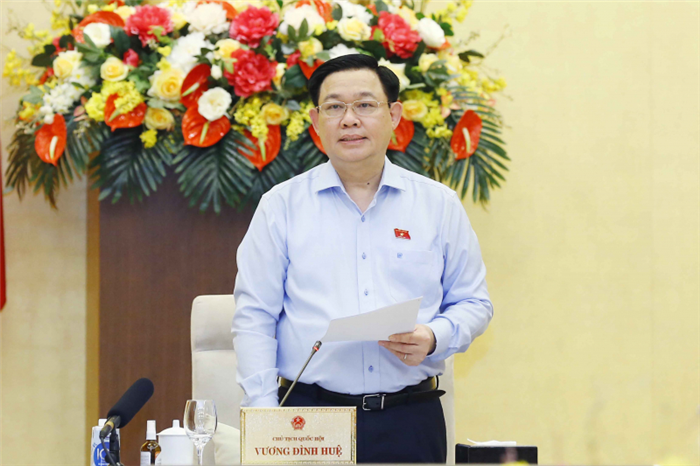Chủ tịch Quốc hội Vương Đình Huệ phát biểu tại phiên họp.