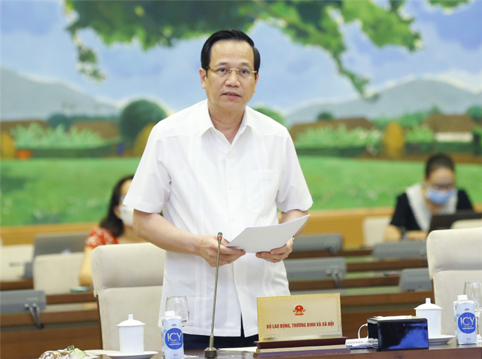 Bộ trưởng Bộ Lao động, Thương binh và Xã hội Đào Ngọc Dung phát biểu.