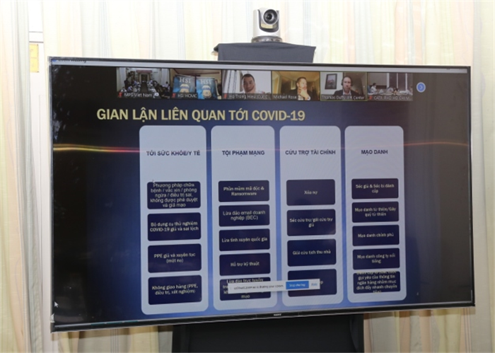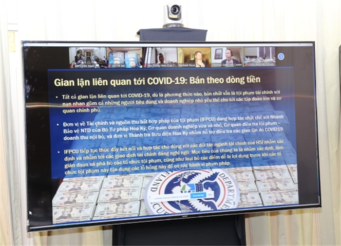 Ngày 28/9/2021, tại Hà Nội, Cục Đối ngoại, Bộ Công an Việt Nam phối hợp với Cơ quan Phòng, chống ma túy và thực thi pháp luật quốc tế, Bộ Ngoại giao Hoa Kỳ; Cơ quan Điều tra an ninh nội địa Hoa Kỳ, Bộ An ninh nội địa Hoa Kỳ cùng các Công ty Dược phẩm Pfizer, Johnson&Johnson, Moderna tổ chức Hội thảo trực tuyến đấu tranh phòng, chống tội phạm lợi dụng tình hình đại dịch Covid-19 để trục lợi.