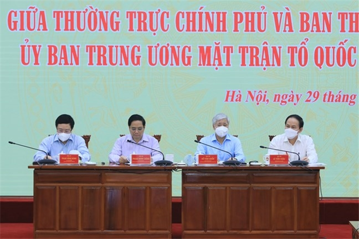 Chính phủ trân trọng đề nghị MTTQ Việt Nam và các tổ chức chính trị - xã hội, Ban Dân vận Trung ương cùng sát cánh với Chính phủ, chung sức, đồng lòng triển khai các nhiệm vụ trọng tâm mà Đại hội XIII của Đảng đã đề ra. Trước mắt là thích ứng an toàn, linh hoạt, kiểm soát hiệu quả dịch Covid-19, vừa phòng, chống dịch thành công, vừa khôi phục và thúc đẩy phát triển kinh tế - xã hội, bảo đảm an sinh xã hội và an dân, an ninh trật tự, an toàn xã hội là nhiệm vụ cấp bách, trọng tâm, hàng đầu trong giai đoạn hiện nay.
