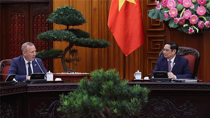 Thủ tướng Phạm Minh Chính tiếp Đại sứ Liên hiệp Vương quốc Anh và Bắc Ireland tại Việt Nam Gareth Ward. Nguồn: TTXVN