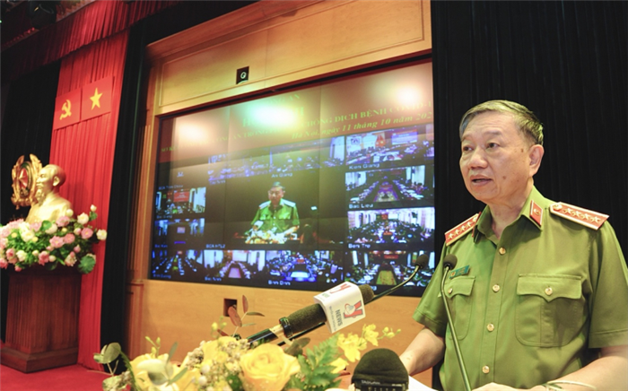 Chiều 11/10, Đại tướng Tô Lâm, Ủy viên Bộ Chính trị, Bộ trưởng Bộ Công an chủ trì Hội nghị sơ kết công tác Công an trong phòng, chống dịch bệnh COVID-19.