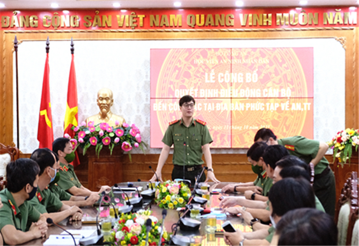 Ngày 11/10, tại Hà Nội, thực hiện chủ trương của Ban Thường vụ Đảng ủy Công an Trung ương, kế hoạch của Bộ Công an về việc điều động cán bộ đang công tác tại các đơn vị trực thuộc Bộ về công tác tại Công an xã biên giới trọng điểm, phức tạp về an ninh, trật tự, Học viện An ninh nhân dân đã tổ chức Lễ công bố quyết định điều động cán bộ tăng cường về công tác tại Công an xã các tỉnh biên giới.