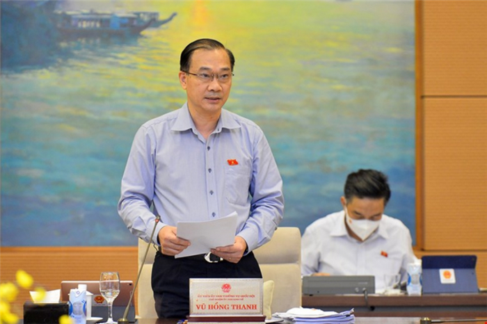 Chủ nhiệm Uỷ ban Kinh tế của Quốc hội Vũ Hồng Thanh trình bày báo cáo thẩm tra.