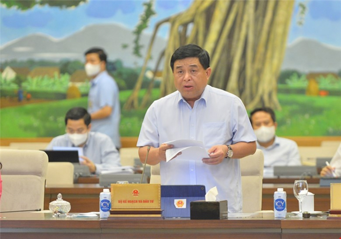Bộ trưởng Bộ Kế hoạch -Đầu tư Nguyễn Chí Dũng trình bày báo cáo.