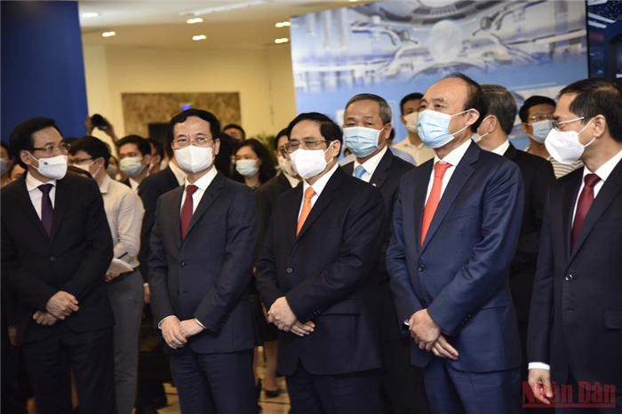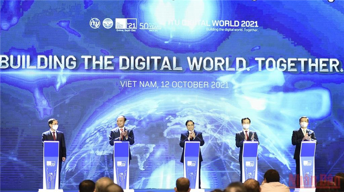 Thủ tướng Chính phủ Phạm Minh Chính cùng các đại biểu nhấn nút khai mạc ITU Digital World 2021.