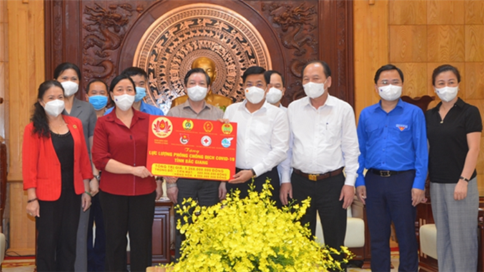 Bí thư Trung ương Đảng, Trưởng Ban Dân vận Trung ương Bùi Thị Minh Hoài và Đoàn công tác trao tặng kinh phí và hiện vật phòng, chống dịch COVID-19 cho tỉnh Bắc Giang |