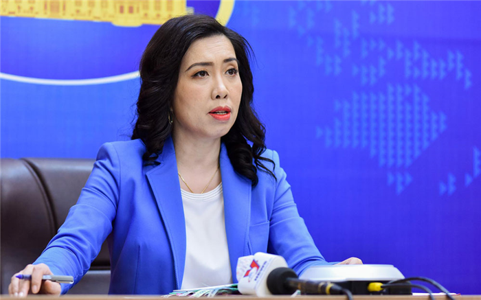 Người phát ngôn Bộ Ngoại giao Lê Thị Thu Hằng tại buổi họp báo. (Ảnh: Bộ Ngoại giao)