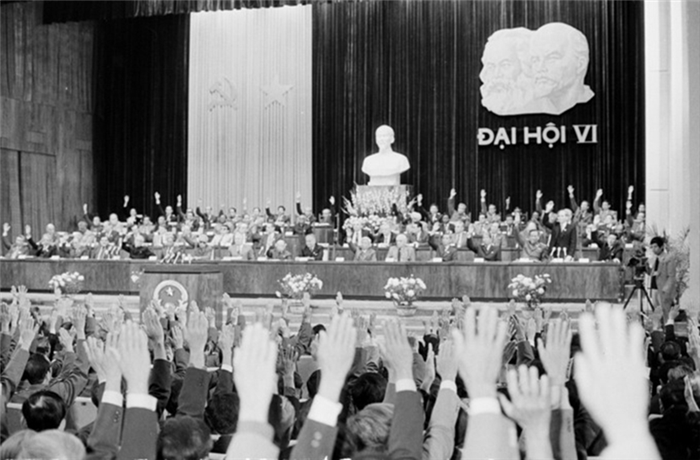 Các đại biểu thông qua văn kiện Đại hội VI. Ảnh: TTXVN. |