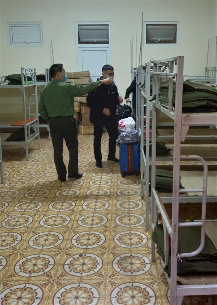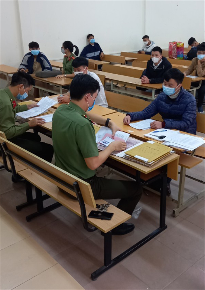 Các thầy chủ nhiệm làm thủ tục nhập học và dẫn học viên về nơi cách ly tập trung theo quy định