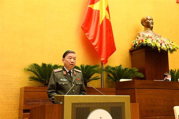 Bộ trưởng Tô Lâm trình bày báo cáo tóm tắt công tác phòng, chống tội phạm và vi phạm pháp luật năm 2021 tại Kỳ họp thứ 2, Quốc hội khóa XV. |