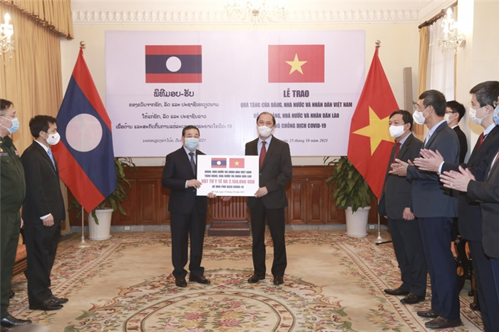 Buổi lễ do Thứ trưởng Bộ Ngoại giao Nguyễn Quốc Dũng chủ trì và có sự tham dự của Đại sứ đặc mệnh toàn quyền Cộng hòa DCND Lào tại Việt Nam Sengphet Houngboungnuang, cùng đại diện một số ban, bộ, ngành của Việt Nam. Theo đó, để chia sẻ với Lào, Đảng, Nhà nước và nhân dân Việt Nam quyết định hỗ trợ khẩn cấp Đảng, Nhà nước và nhân dân Lào số tiền 2.150.000USD và một số vật tư y tế phục vụ công tác phòng, chống dịch.