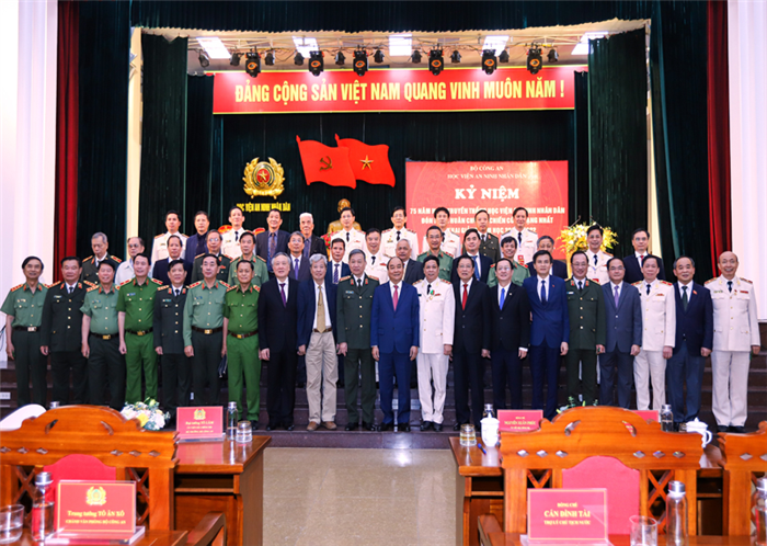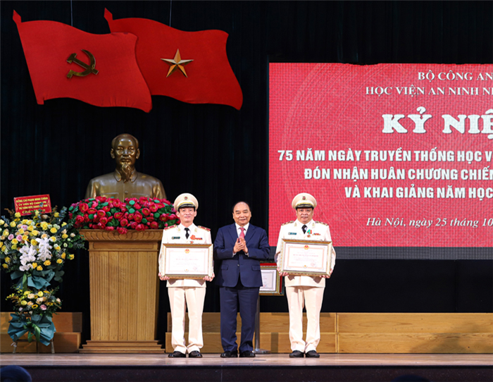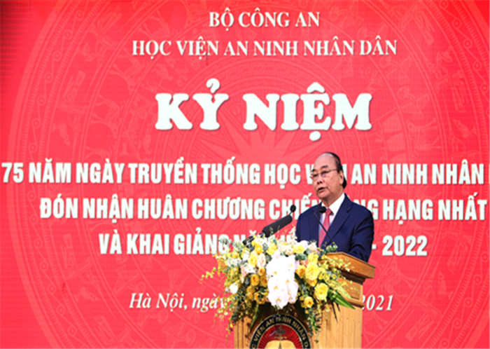 Thay mặt lãnh đạo Đảng, Nhà nước, Chủ tịch nước Nguyễn Xuân Phúc chúc mừng, biểu dương, ghi nhận và đánh giá cao những thành tích, chiến công trong suốt 75 năm qua mà các thế hệ lãnh đạo, cán bộ, giảng viên, học viên Học viện đã bền bỉ, nỗ lực phấn đấu, vượt qua nhiều khó khăn, thử thách, không ngừng lớn mạnh, trưởng thành, có nhiều đóng góp hết sức quan trọng vào sự nghiệp chung của lực lượng CAND và sự nghiệp cách mạng vẻ vang của Đảng, Nhà nước và Nhân dân. Học viện đã phấn đấu trở thành một trong những cơ sở giáo dục trọng điểm, trung tâm nghiên cứu, phát triển lý luận hàng đầu của ngành Công an và đang tiếp tục phấn đấu trở thành cơ sở giáo dục trọng điểm quốc gia trong thời gian tới.