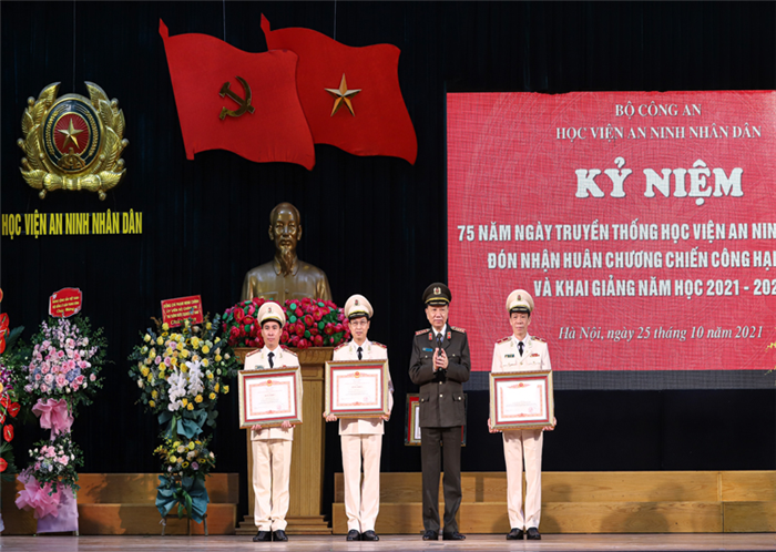 Ngày 25/10, Học viện An ninh nhân dân (ANND) long trọng tổ chức Lễ kỷ niệm 75 năm Ngày truyền thống Học viện (25/6/2046 - 26/62021), đón nhận Huân chương Chiến công Hạng nhất và Khai giảng năm học 2021-2022.