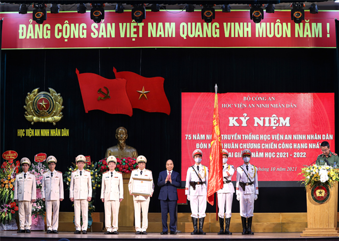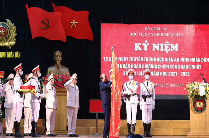 Chủ tịch nước Nguyễn Xuân Phúc trao Bằng Huân chương Chiến công hạng Nhất cho Học viện ANND.