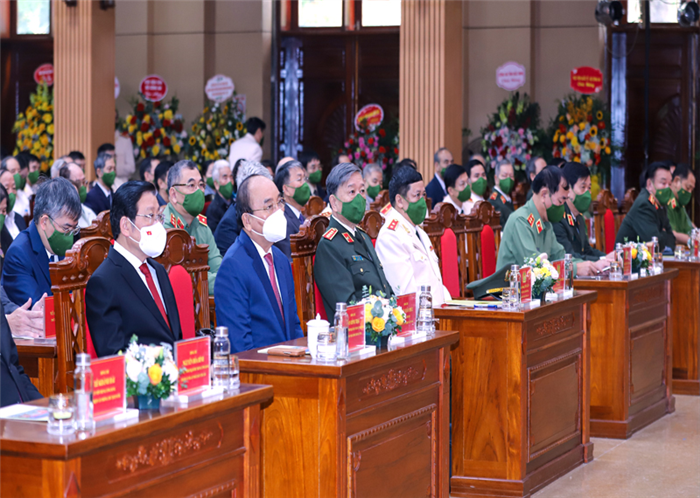 Đồng chí Nguyễn Xuân Phúc - Ủy viên Bộ Chính trị, Chủ tịch nước Cộng hòa xã hội chủ nghĩa Việt Nam, Chủ tịch Hội đồng Quốc phòng và An ninh đến dự và phát biểu chỉ đạo tại Lễ kỷ niệm.