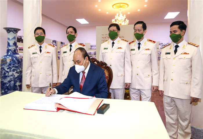 Đồng chí Nguyễn Xuân Phúc - Ủy viên Bộ Chính trị, Chủ tịch nước ghi sổ vàng lưu truyền thống Học viện ANND.