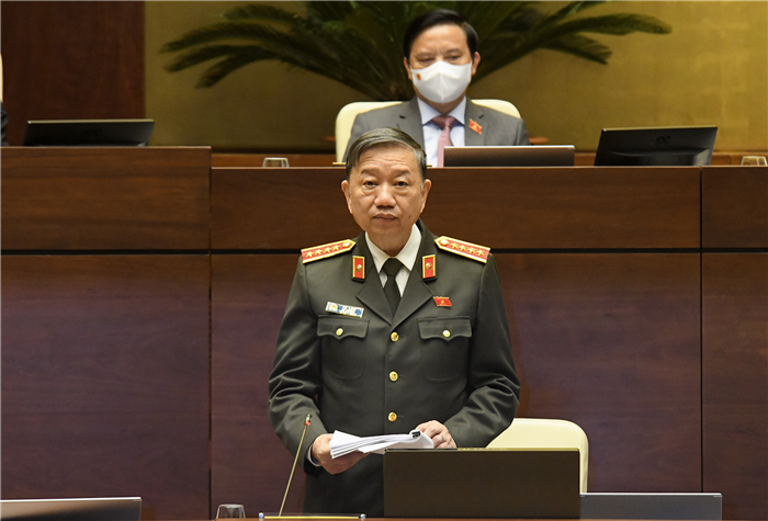 Thực hiện Chương trình Kỳ họp thứ 2, Quốc hội khóa XV, ngày 26/10/2021, dưới sự điều hành của Phó Chủ tịch Quốc hội Trần Quang Phương, Quốc hội thảo luận trực tuyến về Dự án Luật Cảnh sát cơ động (CSCĐ). Đại tướng Tô Lâm, Ủy viên Bộ Chính trị, Bộ trưởng Bộ Công an đã giải trình, làm rõ một số vấn đề đại biểu Quốc hội nêu.
