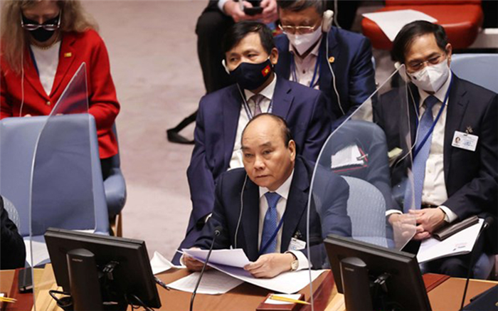 Chủ tịch nước Nguyễn Xuân Phúc tham dự và phát biểu tại một phiên họp cấp cao của Hội đồng Bảo an Liên hợp quốc. (Ảnh: TTXVN)
