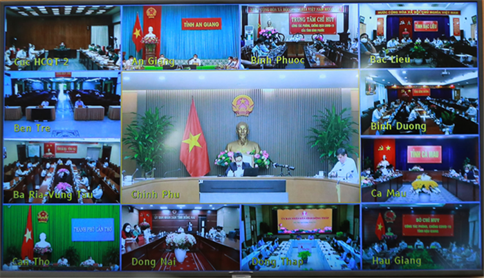Thông báo nêu rõ, chiều 26/10/2021, tại Trụ sở Chính phủ, Phó Thủ tướng Vũ Đức Đam đã chủ trì cuộc họp trực tuyến với lãnh đạo 19 tỉnh, thành phố miền Đông, miền Tây Nam Bộ. Tham dự cuộc họp có đồng chí Nguyễn Thanh Long, Bộ trưởng Bộ Y tế; đồng chí Võ Minh Lương, Tổ trưởng Tổ công tác đặc biệt của Chính phủ thực hiện công tác phòng, chống dịch COVID-19; đại diện các Bộ, cơ quan: Công an, Quốc phòng, Tài chính, Giao thông vận tải, Công Thương, Văn hóa, Thể thao và Du lịch, Giáo dục và Đào tạo, Thông tin và Truyền thông và Văn phòng Chính phủ; các thành viên Ban Chỉ đạo phòng, chống dịch COVID-19 tỉnh, thành phố: Thành phố Hồ Chí Minh, Cần Thơ, Bình Dương, Bình Phước, Bà Rịa-Vũng Tàu, Long An, Đồng Nai, Tây Ninh, Tiền Giang, Bến Tre, Trà Vinh, Sóc Trăng, Bạc Liêu, Cà Mau, An Giang, Đồng Tháp, Hậu Giang, Vĩnh Long, Kiên Giang.