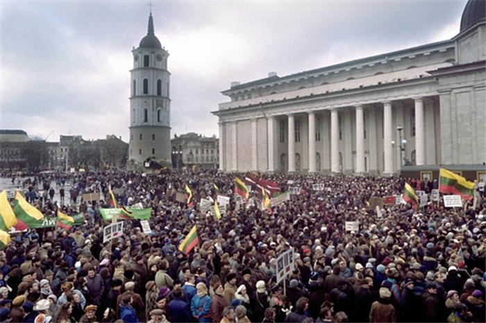 Người dân Litva (nước thành viên của Liên Xô) tụ tập ở thủ đô Vilnius vào ngày 12-1-1990 để đòi tách khỏi Liên Xô. Litva là nước cộng hòa Xô viết đầu tiên tuyên bố độc lập. Ảnh: Getty.