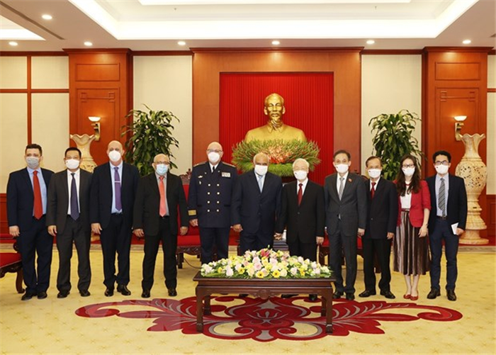 Đại sứ Orlando Nicolás Hernández Guillén báo cáo khái quát về tình hình Cuba, về một số kết đạt được trong triển khai Nghị quyết của Đại hội VIII của Đảng Cộng sản Cuba tháng 4/2021 vừa qua; cho biết Cuba đang nỗ lực hoàn thành mục tiêu tiêm chủng cho toàn dân trong năm 2021 và từng bước triển khai chiến lược phát triển kinh tế giai đoạn hậu Covid-19. Tổng Bí thư Nguyễn Phú Trọng chân thành cảm ơn Đảng, Nhà nước và nhân dân Cuba anh em, tình cảm của lãnh tụ Raul và các đồng chí lãnh đạo Cuba, dù còn gặp nhiều khó khăn nhưng vẫn luôn sẵn sàng chia sẻ, giúp đỡ Việt Nam, đặc biệt là hợp tác về vaccine ngừa COVID-19 như tinh thần của lãnh tụ Fidel Castro trước đây “Vì Việt Nam, Cuba sẵn sàng hiến dâng cả máu của mình”; hợp tác, ủng hộ lẫn nhau tại các diễn đàn quốc tế; tin tưởng dưới sự lãnh đạo của Đảng Cộng sản Cuba quang vinh, nhân dân Cuba sẽ vượt qua mọi khó khăn, thử thách, thực hiện thành công các mục tiêu, đường lối cho Đại hội VIII đề ra, xây dựng đất nước Cuba xã hội chủ nghĩa phồn vinh và bền vững.