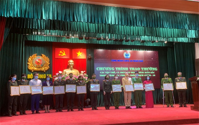 Nhân dịp này, Hội nghị đã tổ chức biểu dương, khen thưởng các tập thể, cá nhân có thành tích xuất sắc trong công tác phòng chống dịch COVID-19, đồng thời tổ chức biểu dương các tác giả đạt giải tại Cuộc thi viết "Tiếp sức nơi tuyến đầu chống dịch” trên mạng xã hội Facebook năm 2021 do Công đoàn CAND phát động. Đồng thời, trao tặng “Túi An sinh” và thẻ bảo hiểm vì lợi ích đoàn viên Công đoàn cho các đoàn viên Công đoàn có hoàn cảnh khó khăn, bị ảnh hưởng bởi dịch COVID-19.