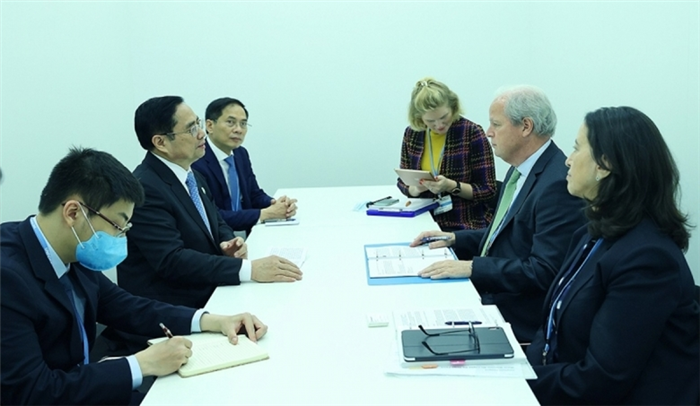 Trao đổi với ông Axel Van Trosenburg, Thủ tướng khẳng định phát triển bền vững và tăng trưởng xanh là chủ trương, quan điểm xuyên suốt của Việt Nam. Triển khai định hướng ưu tiên xây dựng mô hình kinh tế xanh, kinh tế tuần hoàn, kinh tế ít các-bon, Việt Nam đã ban hành Chiến lược tăng trưởng xanh quốc gia giai đoạn 2021-2030, tầm nhìn 2050 với mục tiêu cơ cấu lại nền kinh tế theo hướng bền vững về môi trường, công bằng về xã hội, hướng tới nền kinh tế trung hòa các-bon và đóng góp vào mục tiêu chung của toàn cầu về giảm phát thải nhà kính.
