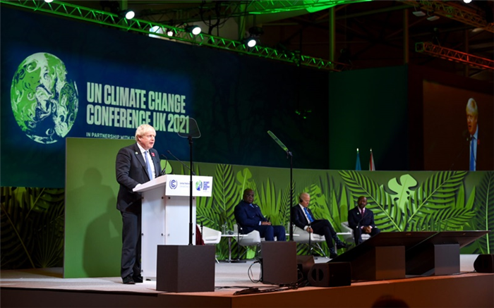 Thủ tướng Anh Boris Johnson phát biểu tại một hội nghị trong khuôn khổ COP26. (Ảnh: COP26)