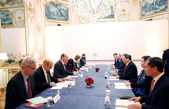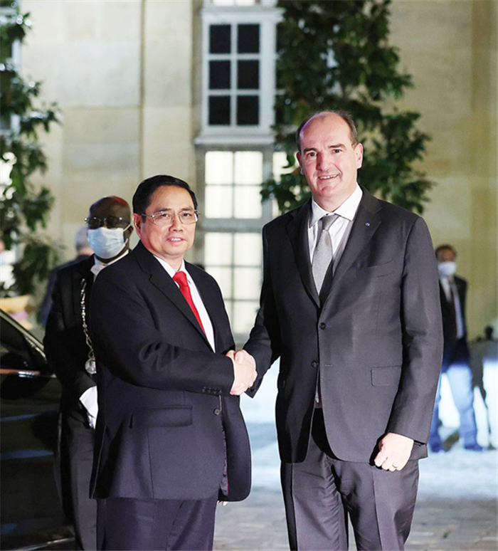 Thủ tướng Jean Castex bày tỏ vui mừng đón Thủ tướng Phạm Minh Chính sang thăm chính thức Cộng hòa Pháp, đánh giá cao quan hệ gắn bó giữa nhân dân hai nước và mức độ phát triển sâu rộng, đa dạng của quan hệ Đối tác chiến lược với Việt Nam trong thời gian qua.