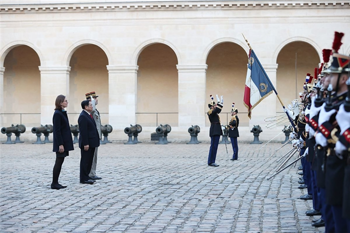 Chiều 3-11 (theo giờ địa phương), Lễ đón chính thức Thủ tướng Chính phủ Phạm Minh Chính cùng Đoàn đại biểu cấp Việt Nam thăm chính thức Cộng hòa Pháp đã diễn ra tại Điện Invalides ở thủ đô Paris do bà Amelie de Montchallin, Bộ trưởng Chuyển đổi và Hành chính Công Pháp, chủ trì.