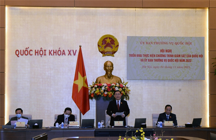 Sáng 4-11, tại Nhà Quốc hội, Chủ tịch Quốc hội Vương Đình Huệ chủ trì Hội nghị triển khai thực hiện Chương trình giám sát của Quốc hội và Ủy ban Thường vụ Quốc hội năm 2022.
