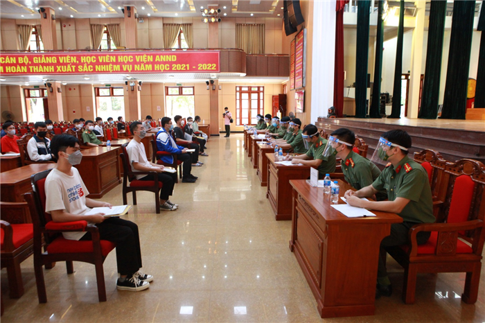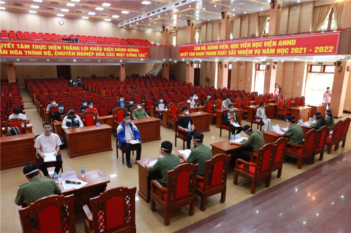 Thời điểm nhập học diễn ra trong bối cảnh dịch COVID-19 vẫn phức tạp, khó lường tại Hà Nội và nhiều địa phương, Học viện ANND đã phối hợp với Công an các đơn vị, địa phương tổ chức kiểm tra sức khỏe, xét nghiệm COVID-19 ngay ở địa phương, đưa đón học viên tập trung theo đoàn, bảo đảm an toàn phòng, chống dịch COVID-19.