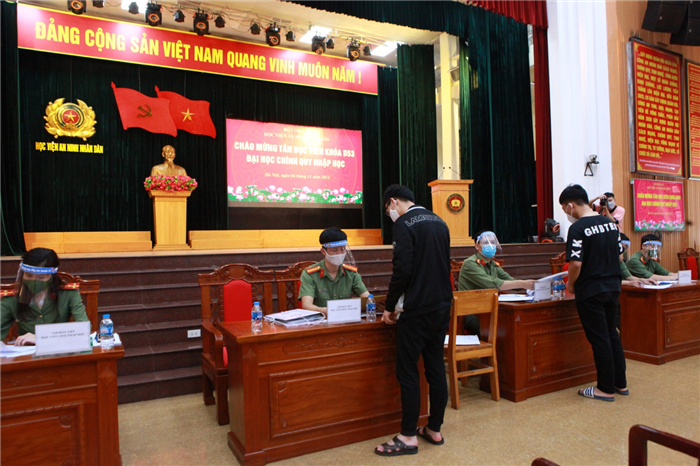 Công tác đón tiếp, làm thủ tục nhập học cũng được Học viện ANND chuẩn bị chu đáo, thực hiện nghiêm túc quy định phòng, chống dịch bệnh. Theo đó, học viên thuộc “vùng xanh” được hướng dẫn đón tiếp tại khu vực Hội trường lớn Học viện; đối với học viên đến từ các địa phương thuộc “vùng vàng, vùng cam” được đưa về địa điểm cách ly y tế của Học viện và sẽ làm thủ tục nhập học sau khi hết thời gian cách ly.