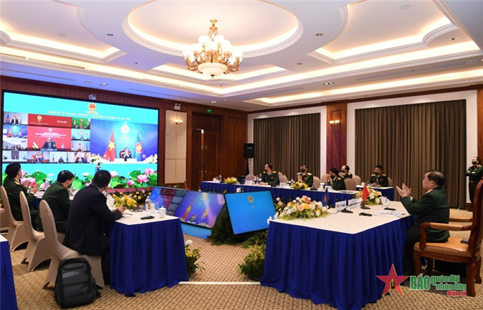 Lễ bàn giao vai trò Chủ tịch ADMM 2022 cho Campuchia diễn ra theo hình thức trực tuyến. Ảnh: PHÚ SƠN. |
