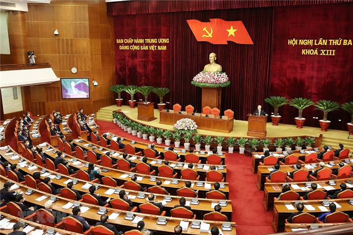 Phiên bế mạc Hội nghị lần thứ ba Ban Chấp hành Trung ương Đảng Cộng sản Việt Nam khóa XII ngày 8/7. Ảnh: TTXVN.