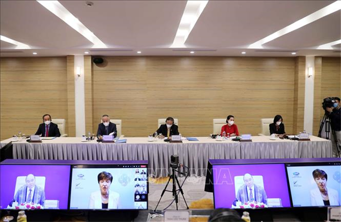 Đoàn đại biểu Việt Nam tham dự Hội nghị theo hình thức trực tuyến.
