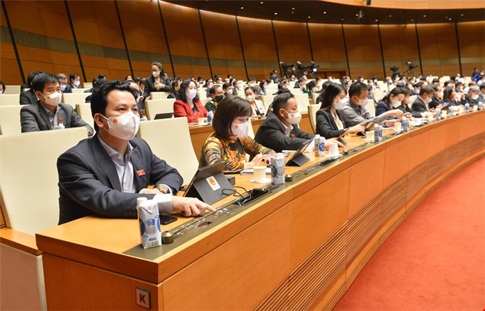 Các đại biểu biểu quyết tại hội trường.