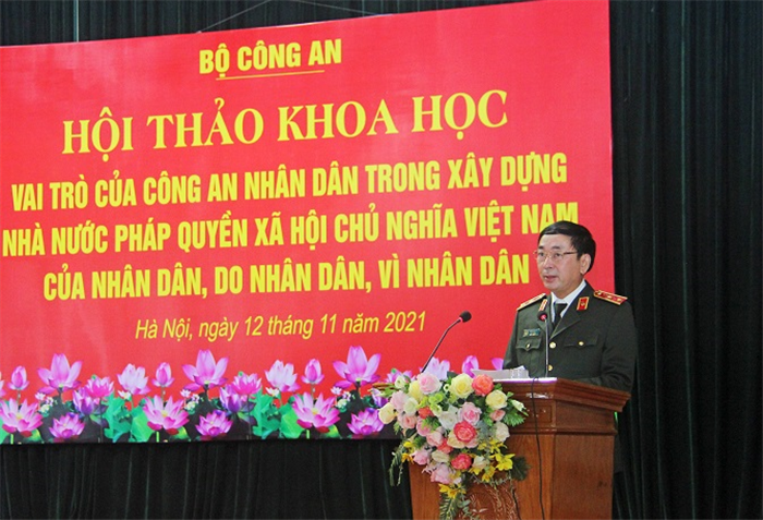 Sáng 12/11/2021, tại Hà Nội, Bộ Công an tổ chức Hội thảo khoa học “Vai trò của Công an nhân dân (CAND) trong xây dựng Nhà nước pháp quyền Xã hội chủ nghĩa (XHCN) Việt Nam của Nhân dân, do Nhân dân, vì Nhân dân”. Trung tướng, PGS.TS Trần Quốc Tỏ, Uỷ viên Trung ương Đảng, Thứ trưởng Bộ Công an chủ trì Hội thảo.