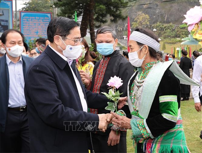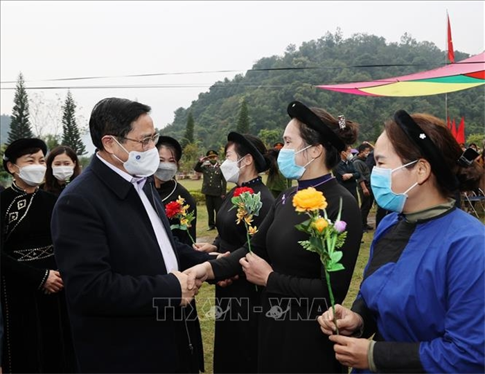 Thủ tướng Phạm Minh Chính với đồng bào các dân tộc tỉnh Cao Bằng. Ảnh: TTXVN |
