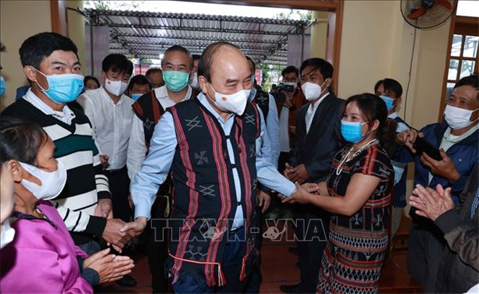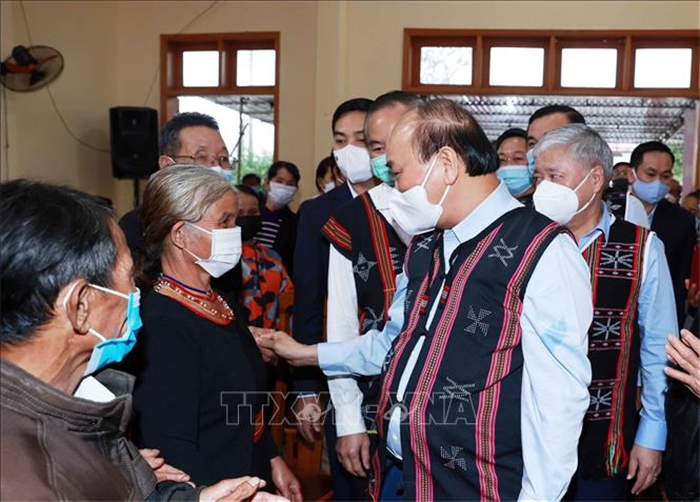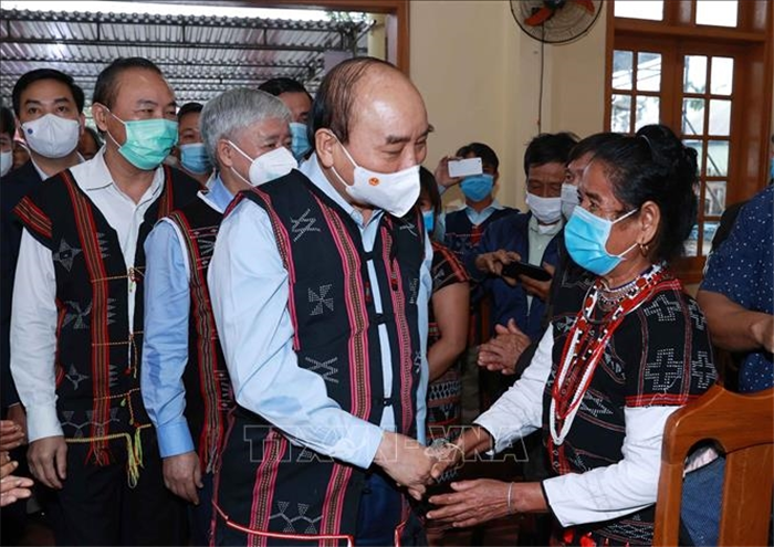 Chủ tịch nước Nguyễn Xuân Phúc với đồng bào các dân tộc tỉnh Quảng Nam. Ảnh: TTXVN |