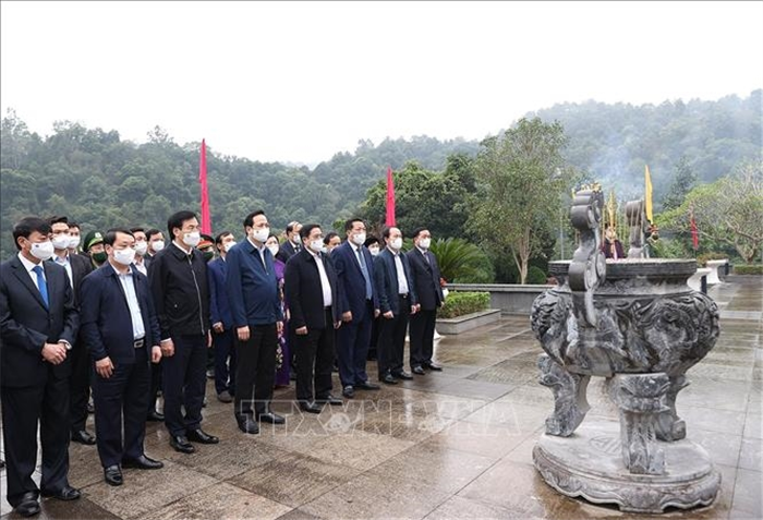 Thủ tướng Phạm Minh Chính dâng hương tưởng niệm Bác Hồ tại Khu Di tích Pác Bó. Ảnh:TTXVN |
