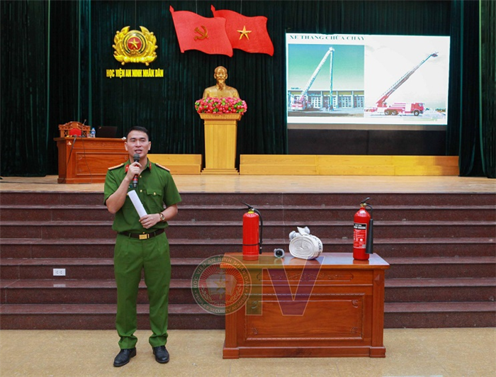 Phát biểu khai mạc, Thượng tá Chu Quang Thiện nhấn mạnh, Đảng ủy, Ban Giám đốc Học viện đặc biệt quan tâm đến công tác PCCC và coi đó là nhiệm vụ trọng tâm, thường xuyên của Học viện và luôn được tổ chức hàng năm, nhằm giúp nâng cao nhận thức cho cán bộ, giảng viên, công nhân viên, học viên và nhân viên Ban dịch vụ trong Học viện về ý nghĩa, tầm quan trọng của công tác phòng, chống cháy nổ, cứu nạn cứu hộ; các quy định của pháp luật về PCCC. Đồng thời, trang bị kiến thức cơ bản, phương pháp thực hành về PCCC và cứu nạn, cứu hộ giúp cán bộ, giảng viên, công nhân viên, học viên và nhân viên Ban dịch vụ chủ động phòng ngừa cũng như biết các sử dụng các phương tiện PCCC tại chỗ và quy trình tổ chức cứu chữa một vụ cháy khi có sự cố cháy xảy ra tránh gây thiệt hại về người và tài sản trong Học viện.